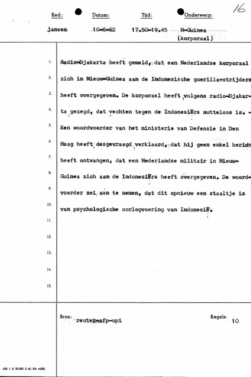 Transcriptie van het Radionieuwsbulletin verzorgd door het ANP