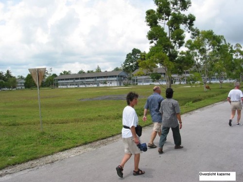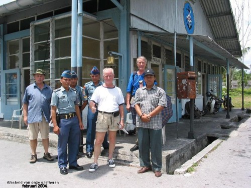 Afscheid bij de wacht en de ingang van de MSK Biak. Let nog even op de Rode PTT brievenbus!!!