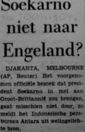Het voorgenomen bezoek officiele bezoek dat president Soekarno in mei aan Groot-Britannie zou brengen gaat misschien niet door, zo meldt het Indonesische persbureau Antara uit welingelichte bron.