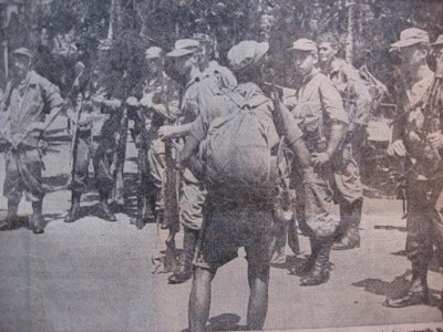 De krachtmeting begon op 26 april. Met 39 man deed ,,Litnan" Hiero een sprong in het ochtendgloren uit een Dakota boven Nieuw Guinea. ,,Ik, Luitenant Hieroe, ben uitverkoren de geknechte Papoea,s te bevrijden", schreef hij ,,frisch und fröhlich"in het dagboek dat de Nederlandse mariniers later zouden buit maken. ,,Ik ben uitverkoren om op te rukken naar Kaimana.In alle kampongs zal ik de guerilla van de Papoea,s organiseren en de opstand tegen de Nederlanders uitlokken" schreef hij hoopvol.