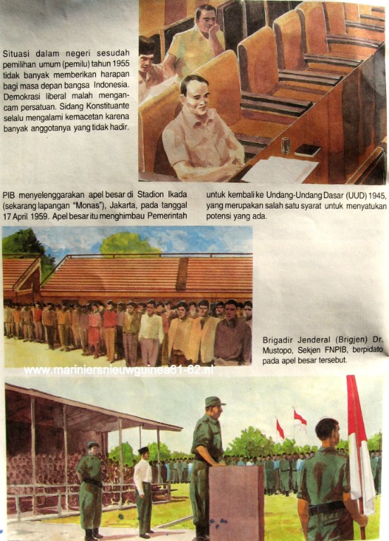 Het PIB ( Perintis Irian Barat ) De Pioniers voor West Irian hield op 17 april 1959 een grote bijeenkomst ( Appèl) in het stadion Ikada te Jakarta ( tegenwoordig de plaats van het "Monas"monument ). De grote bijeenkomst ( Appèl) vroeg de overheid terugtekeren naar de uitgangspunten van het Udang-Udang Dasar ( UDD =Shrimp-Shrimp Associatie ) van 1945 , hetgeen een voorwaarde is om het potentieel (mensen) samen te brengen .