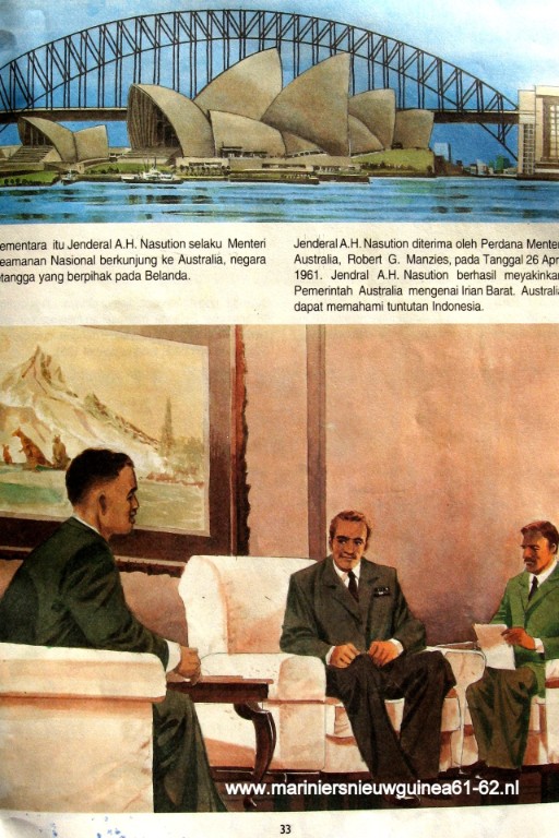 Generaal A.H.Nasution werd op 26 april 1961 ontvangen door de Australische premier Robert.G.Menzies. Generaal A.H.Nasution slaagde erin de Australische regering te overtuigen van de kwestie Nieuw Guinea , waardoor Australië de eisen van Indonesié kon begrijpen.