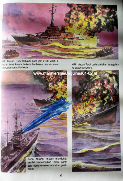 De KRI Macan Tutul werd om 21.15uur ( tijdzone 1 ) in brand geschoten en vrij snel daarna ontstond er een ontploffing.