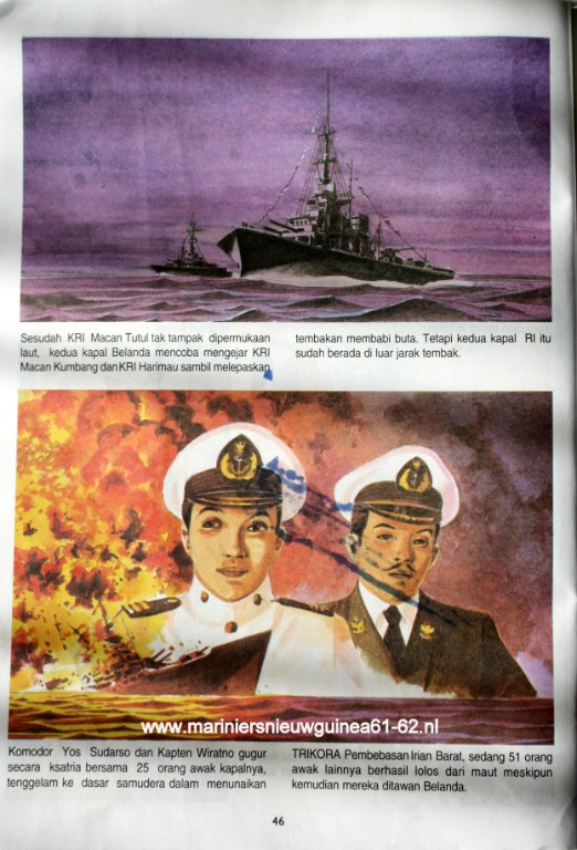 Commodore Yos Sudarso en Kapitein Wiratno en 25 bemanningsleden gaan als ridders mee in de golven van de zee, terwijl hun schip naar de bodem van de oceaan zonk in de vervulling van Trikora de Bevrijding- en Verovering van West Irian, terwijl de 51 overige bemanningsleden er in gelaagd waren aan de dood te ontsnappen, werden zij later opgepikt door de Nederlanders.